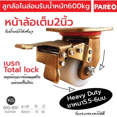 มาตรฐาน ANSI มีขนาดให้เลือก75มม.ลูกล้อไนล่อนลูกปืนตลับคู่ ผ่อนแรงเข็นได้ดี ขาเหล็กเชื่อมหนา 6 มม. เพิ่มความแข็งแรงในการรับน้ำหนัก เนื้อล้อไม่ยุบ ไม่แตก >สำหรับงานอุตสาหกรรมทั่วไป