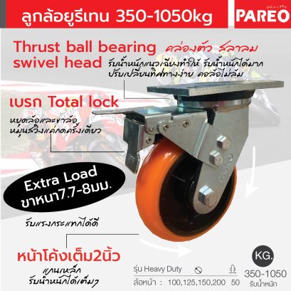 มีขนาดให้เลือก100,125,150,200 มม.ลูกล้อโพลียูรีเทนแกนเหล็กแป้นหมุนหน้าโค้งเนื้อยูรีเทนหนา เปลี่ยนทิศทางได้ง่าย เข็นเบาแรง ลูกปืนตลับคู่ ผ่อนแรงเข็นได้ดี ขาเหล็กเชื่อมเพิ่มความแข็งแรงในการรับน้ำหนัก เนื้อล้อโพลียูรีเทนทนทานมาก ไม่แตก >เข็นนุ่มนวล มีแรงยืดหยุ่นสูง >ไม่ทำให้พื้นเป็นรอย >สำหรับงานอุตสาหกรรมหนัก
